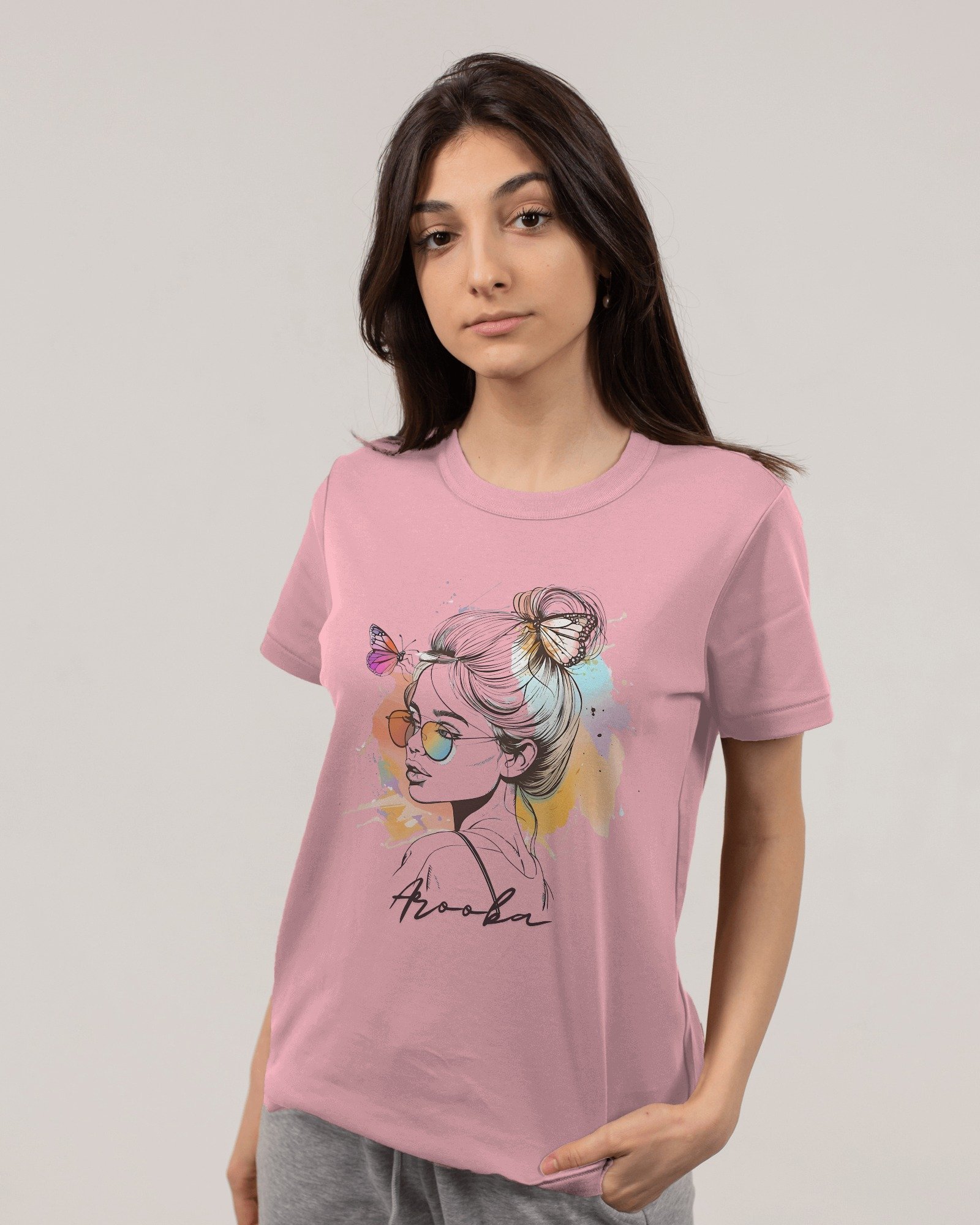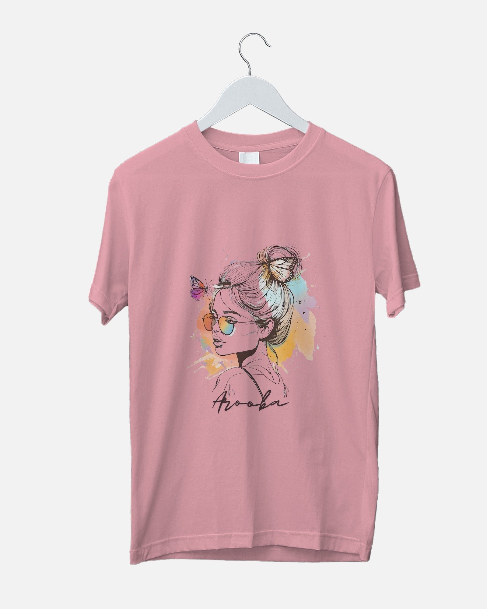 Express your style with this Stylish Girl Graphic T-Shirt, a perfect blend of fashion and attitude. The pink color adds a soft yet bold vibe, while the hand-drawn illustration of a girl with sunglasses and butterflies brings a creative, modern edge. Whether you’re out with friends or styling a casual day look, this tee is made to turn heads. Soft cotton feel and vibrant print make it a top pick for fashion-forward individuals.